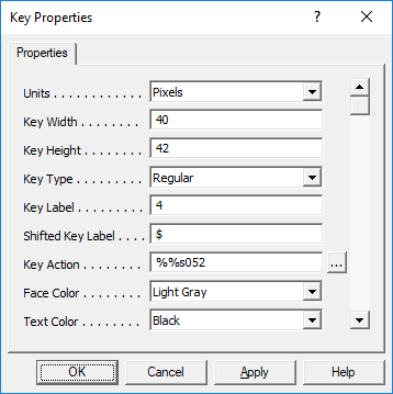 For Regular (& HiRes) keys, this is the Macro command to generate Keystrokes. It can be up to 31 characters long. There is the Build-A-Board Macro Builder available by clicking on the Build button (...).