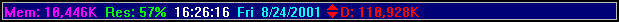 The information panel appears below the currently displayed panels and shows date, time, system resources, etc. as chosen for display in My-T-Soft TS Setup. You may rearrange the order of the information shown by clicking on any item. This will move that item to first place on the left in the information panel. If you have more than one hard-drive or a CD-ROM drive, or if you are operating on a Network , use the up-and-down arrows to display the current free space of each drive.